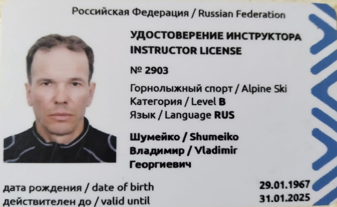 ИНСТРУКТОР ПО ГОРНЫМ ЛЫЖАМ ВЛАДИМИР ШУМЕЙКО